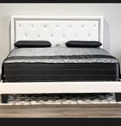 BRAND NEW WHITE KING SIZE LEATHER BED FRAME WITH NEW MATTRESS /FAST DELIVERY$399Mesquite, TX