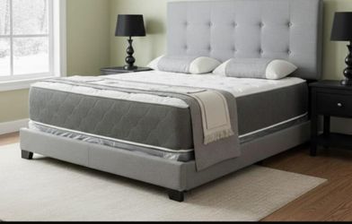 BRAND NEW QUEEN SIZE GRAY LINEN BED FRAME WITH NEW MATTRESS/Fast Delivery$299Plano, TX
