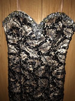 Beautiful dress black and nude with sequins embellishments has corset to adjust can be use for any occasion it was used once was adjusted from the ta$215Bartlett, IL